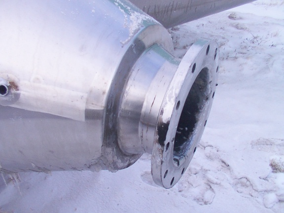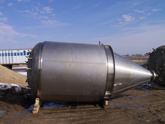 Used Mueller Jacketed Cone Tank for sale.  Cone bottom tank with top access door and sanitary fittings.  Could be used as a fermenter.  Not insulated.  Item specifics as follows…