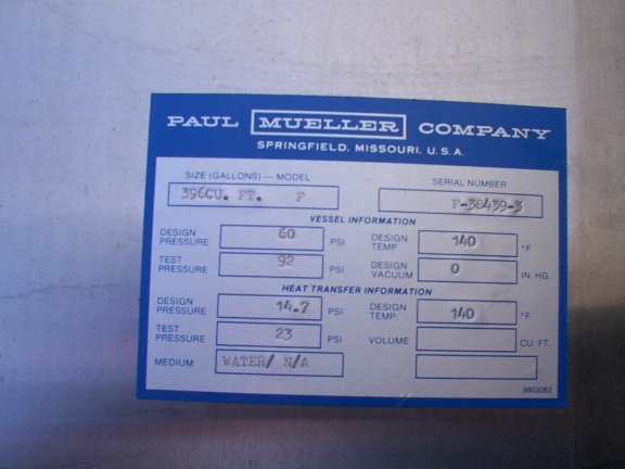 • 396 cu. ft. jacketed stainless steel